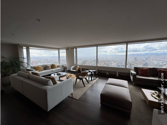 Apartamento completamente amoblado y dotado. Al El área social cuenta con sala, comedor, sala auxiliar con chimenea a gas, amplios ventanales y vista abierta sobre la ciudad.